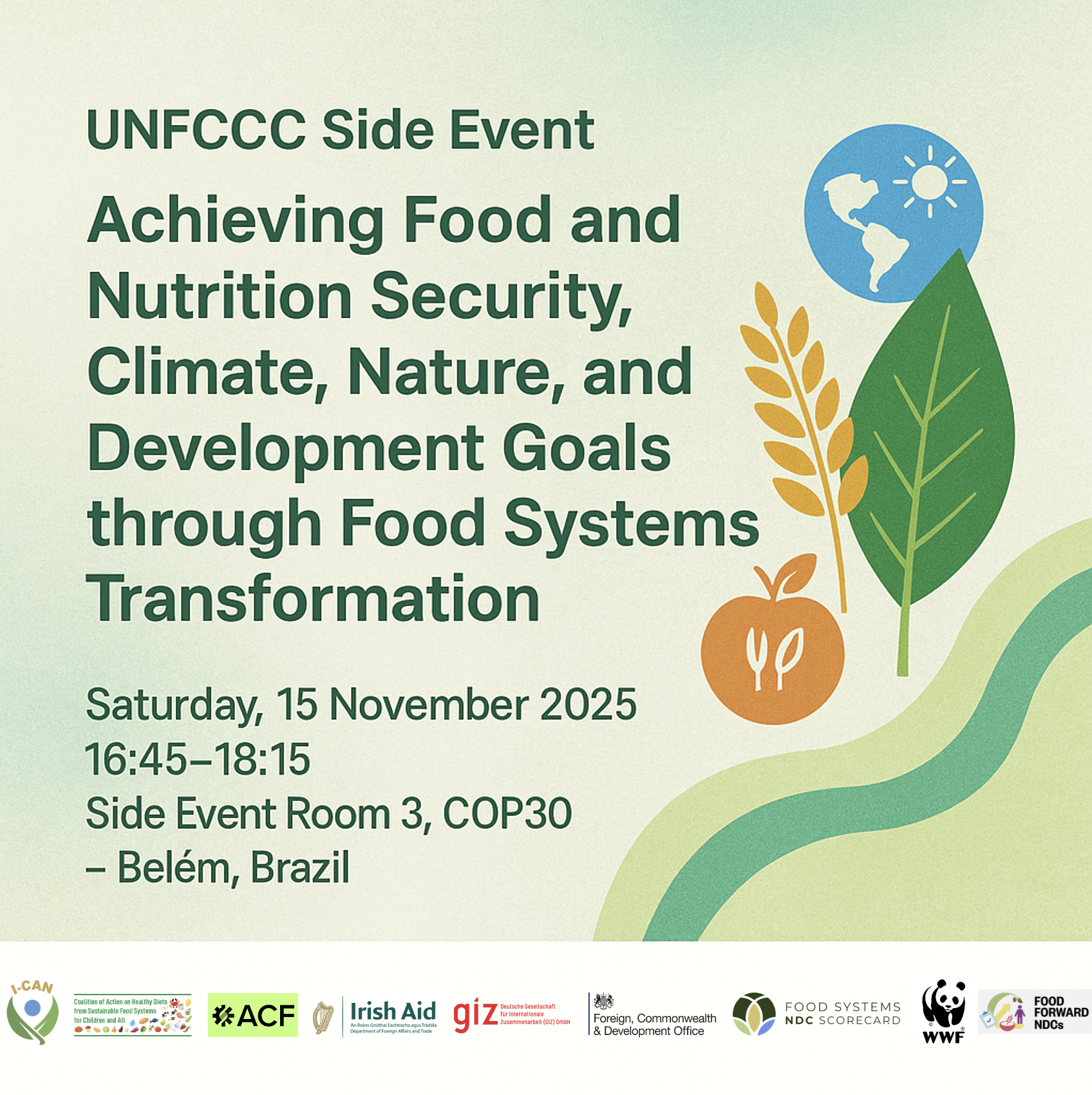 Organizers: Alliance of Champions for Food Systems Transformation (ACF), HDSFS Coalition, WWF Food Forward Initiative, Initiative on Climate Action and Nutrition (I-CAN), with WHO, FAO, the SUN Movement, and GAIN.