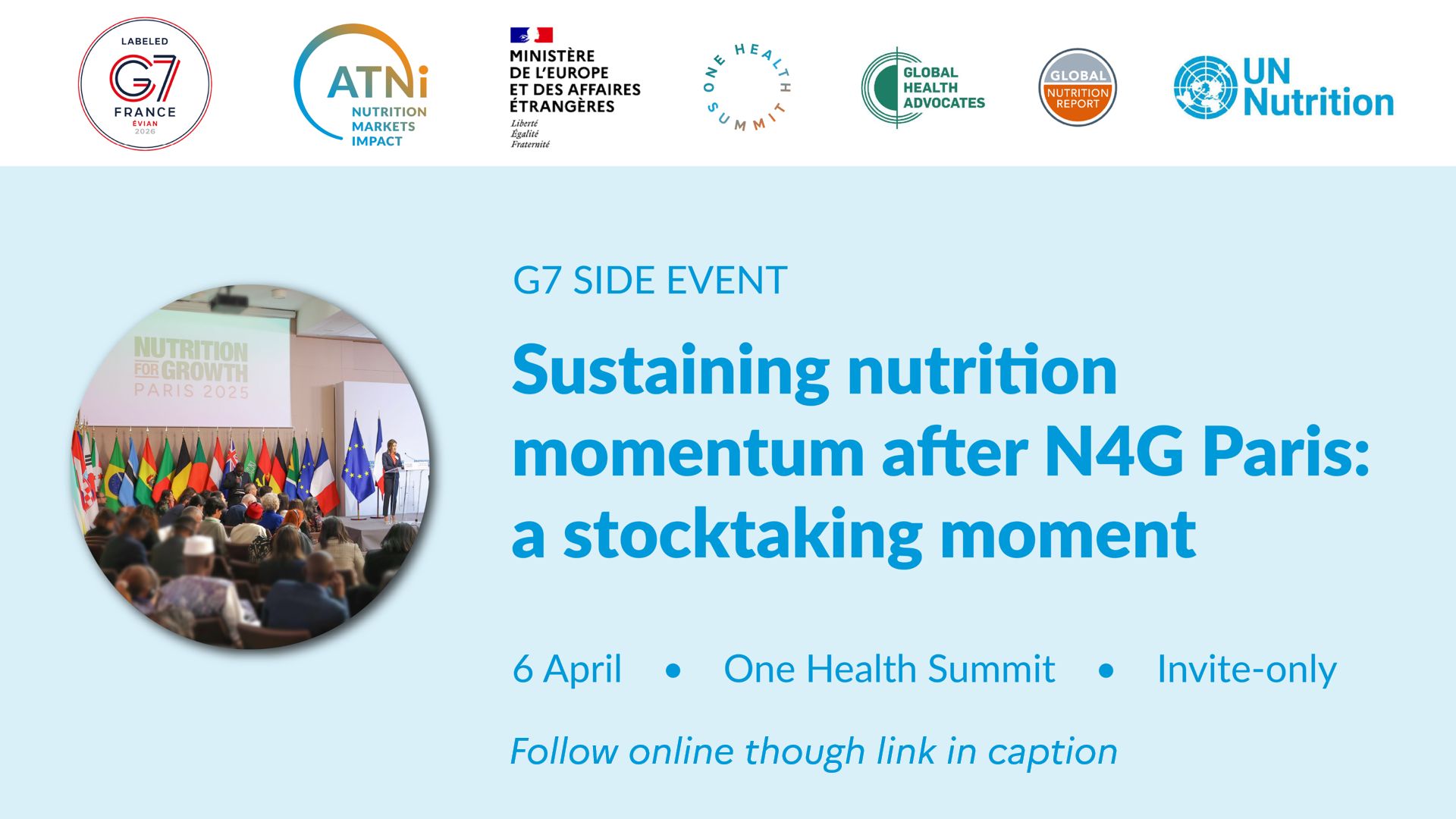 On 6 April 2026, partners gathered in Lyon for the “Post-N4G G7 Side Event: Sustaining nutrition momentum after N4G Paris – Stock-taking moment.” The event was organized by the Ministry for Europe and Foreign Affairs of France and the Access to Nutrition Initiative, in partnership with Global Health Advocates and UN-Nutrition.